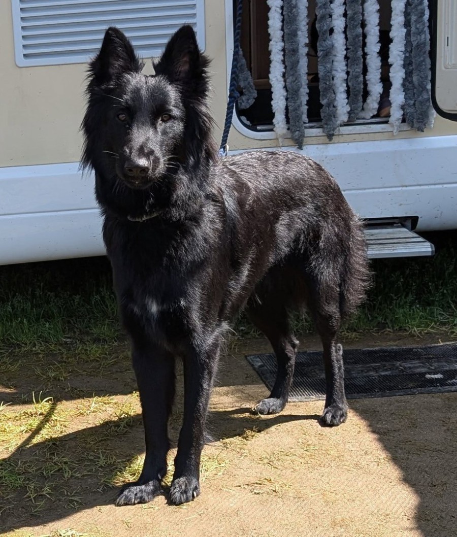 Er ist ein ruhiger , freundlicher und ausgelicher Rüde, mit gut ausgeprägten Spiel- und Beutetrieb.